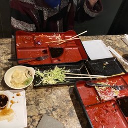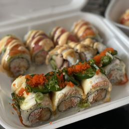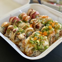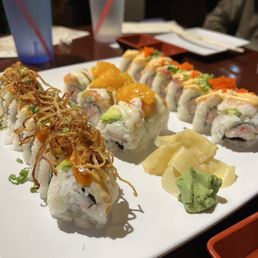 It's a good place if you want something quick and affordable. The quality isn't the best, but what can you expect for the prices/deals that you're paying for? EG offers a plentiful amount of sushi restaurants, it might not be the best but it's the best bang for your buck. We ordered three rolls (buy two, get one free), unagi nigiri, yellowtail nigiri, two miso soups, and a salad. The total was around $50 for two people, which seemed worth it for a hefty dinner. We placed an order and it was ready in about 15 minutes, which is extremely fast for the amount we ordered. I've never dined in and don't see myself doing so anytime soon. However, the location is great and is near home, so it's a good place for pick-up. Upon walking in, the restaurant is large and dimly lit. It didn't seem busy but my order was among the other 5 that they had lined up at the counter. I'll definitely be reordering again, especially the rolls that I got!