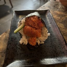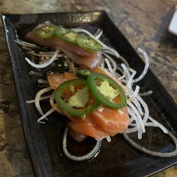 i love sushimono!! It was pretty good for the price and the waiter was super nice and welcoming. She always made sure to check up on us and made us feel more comfortable. The salmon was super creamy and yummy, and the albacore was bomb busting. The environment was nice and calm, with good temperature and boppy music . Loveee sushimono and will always be a big fan